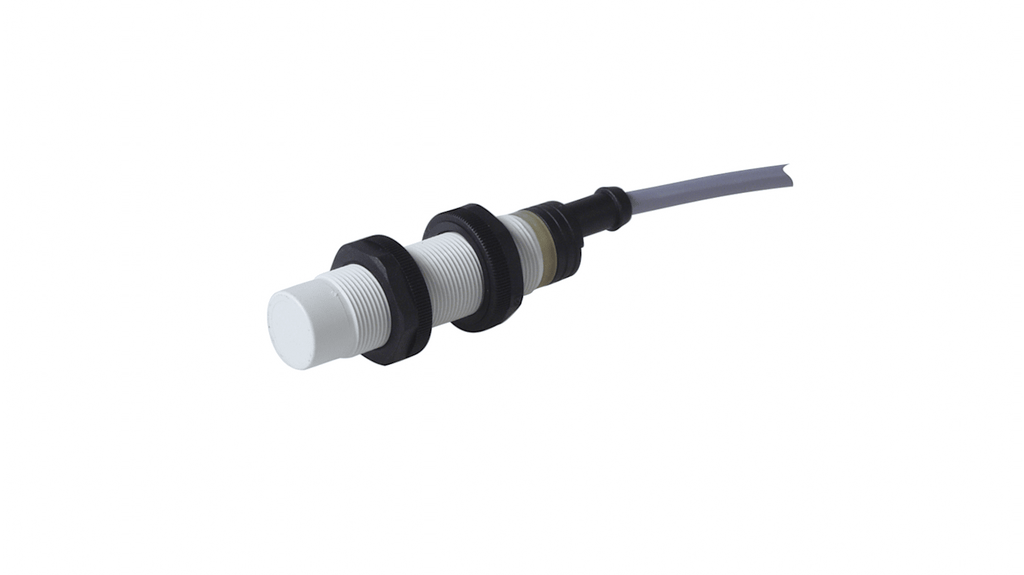 Sensore di prossimità induttivo cilindrico, tecnologia induttiva, M18 x 1, uscita NPN, gamma di rilevamento 8 mm, tensione di alimentazione 10 a 40 V c.c., frequenza di commutazione massima 400 Hz, grado di protezione IP67, indicazione LED per uscita ON, protezione da cortocircuiti e inversione di polarità, ritardo di accensione inferiore a 10 millisecondi, marcatura CE, omologazioni UL e CSA.
