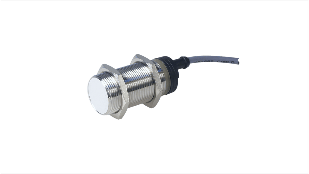 Sensore di prossimità induttivo cilindrico. Contenitore in acciaio inox M30 x 1.5, uscita PNP, rilevamento 10 mm, tensione di alimentazione 10 a 40 V c.c., frequenza di commutazione massima 300 Hz, ritardo di accensione inferiore a 10 millisecondi. Grado di protezione IP67, marcatura CE, omologazioni UL e CSA, protezione contro cortocircuiti e inversione di polarità, indicazione LED per uscita ON.