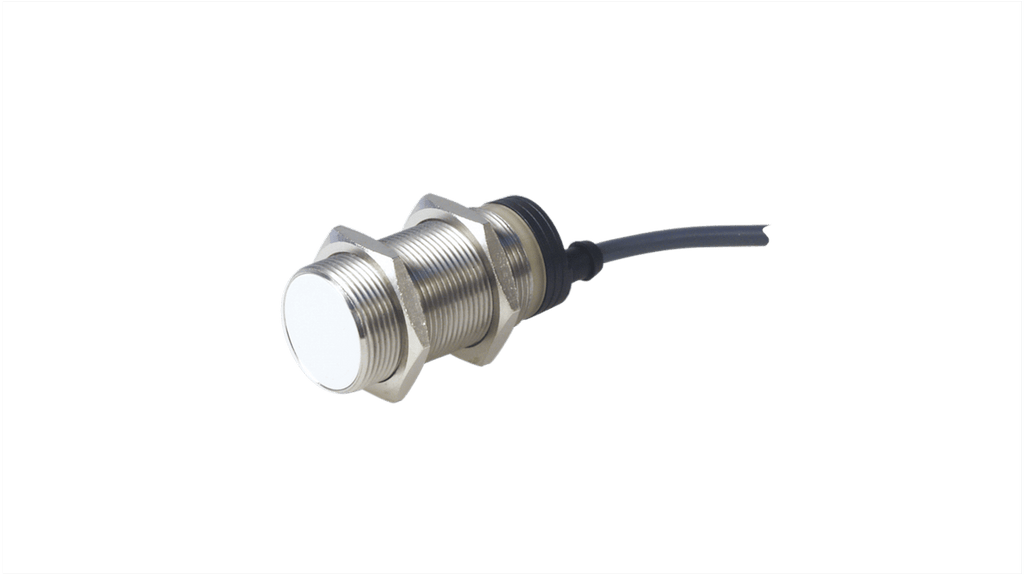 Sensore di prossimità induttivo cilindrico, M30 x 1.5, tecnologia Namur, rilevamento fino a 10 mm, alimentazione 7-9 V CC. Grado di protezione IP67, approvazione EMC secondo EN 50 080 e EN 50 081, ritardo di accensione inferiore a 10 millisecondi, indicazione a LED, protezione contro l'inversione di polarità. Alloggiamento in acciaio inox e poliestere termoplastico. Codice costruttore IA30ELF10UC. Marchio Carlo Gavazzi.