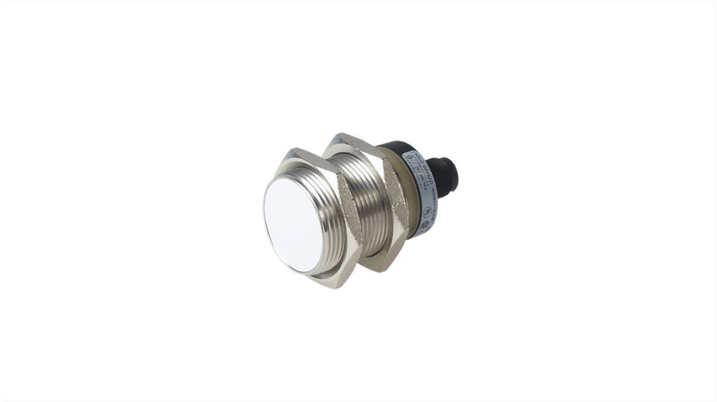 Sensore di prossimità induttivo cilindrico. Corpo in acciaio inox M30 x 1.5, rilevamento 10 mm, uscita NAMUR, tensione di alimentazione 7 a 9 V CC. Grado di protezione IP67, indicazione a LED, protezione contro l'inversione di polarità. Alloggiamento anteriore in poliestere termoplastico grigio, posteriore in poliestere termoplastico nero. Ritardo di accensione inferiore a 10 millisecondi. Approvals EMC secondo EN 50 080 e EN 50 081.