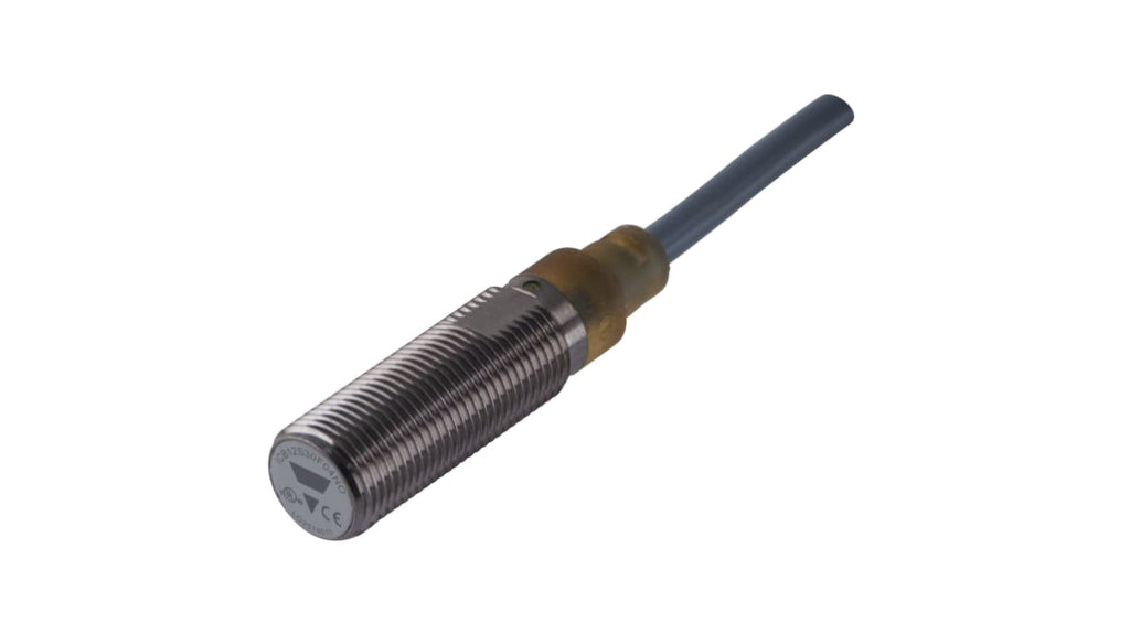 Sensore di prossimità induttivo cilindrico, tecnologia induttiva, corpo in ottone nichelato, filettatura M12 x 1, uscita NPN, gamma di rilevamento 2 mm, tensione di alimentazione 10-36 V CC, grado di protezione IP67, certificato CSA, protezione contro inversione di polarità, cortocircuiti e transienti, indicazione LED per uscita ON, conforme allo standard IEC 60947 5 2.