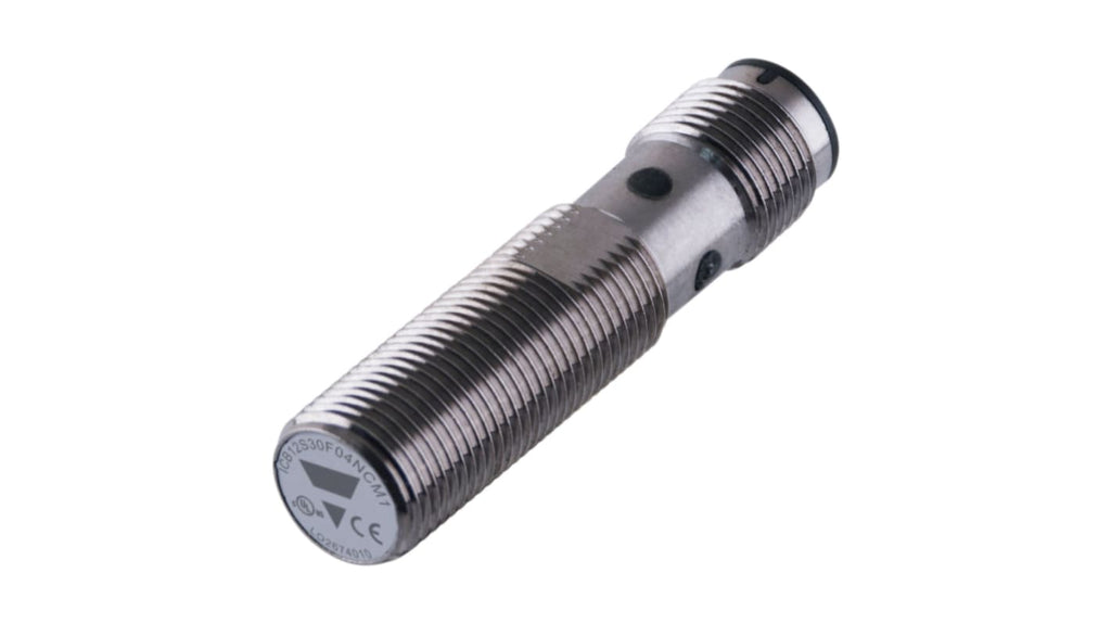 Sensore di prossimità induttivo cilindrico, tecnologia induttiva, corpo in ottone nichelato, dimensione filetto M12 x 1, uscita PNP, gamma di rilevamento 4 mm, tensione di alimentazione 10-36 V CC, grado di protezione IP67, connettore maschio M12, protezione contro inversione di polarità, cortocircuiti e transienti, indicazione LED per uscita ON, conforme allo standard IEC 60947 5 2, certificato CSA per luoghi di lavoro pericolosi.