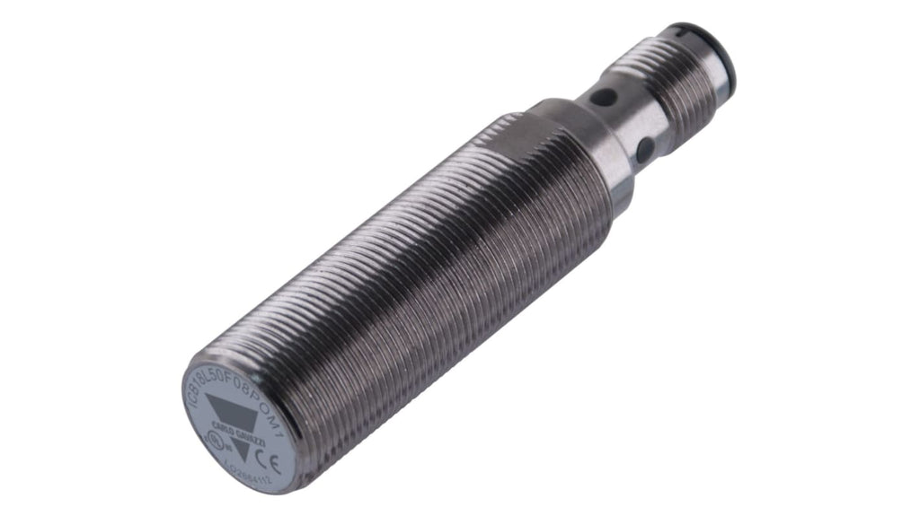 Sensore di prossimità induttivo cilindrico, tecnologia induttiva, corpo in ottone nichelato, dimensione filetto M18 x 1, uscita PNP, gamma di rilevamento 8 mm, tensione di alimentazione 10-36 V CC, grado di protezione IP67, connettore maschio M12, protezione contro inversione di polarità, cortocircuiti e transienti, indicazione LED per uscita ON, conforme allo standard IEC 60947 5 2, certificato CSA per luoghi di lavoro pericolosi.