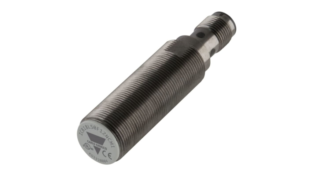 Sensore di prossimità induttivo cilindrico, tecnologia induttiva, corpo in ottone nichelato, dimensione filetto M18 x 1, uscita PNP, gamma di rilevamento 12 mm, tensione di alimentazione 10 a 36 V CC, grado di protezione IP67, connettore maschio M12, protezione contro inversione di polarità, cortocircuiti e transienti, indicazione LED per uscita ON, certificato CSA, conforme allo standard IEC 60947 5 2.