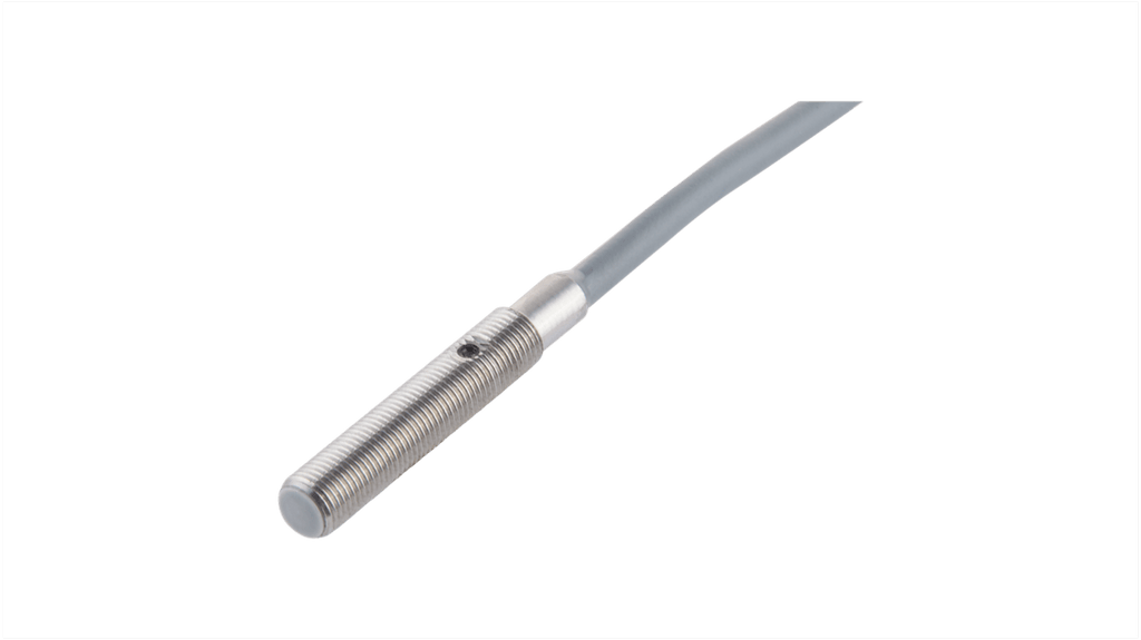 Sensore di prossimità induttivo cilindrico. Tecnologia induttiva, filetto M5 x 0.5, uscita PNP, gamma di rilevamento 0,8 mm, tensione di alimentazione 10-30 V CC, grado di protezione IP67, elettronica in acciaio inox, comunicazione IO Link v1.1, configurazione e parametri regolabili, protezione contro inversione di polarità, cortocircuiti e transienti.