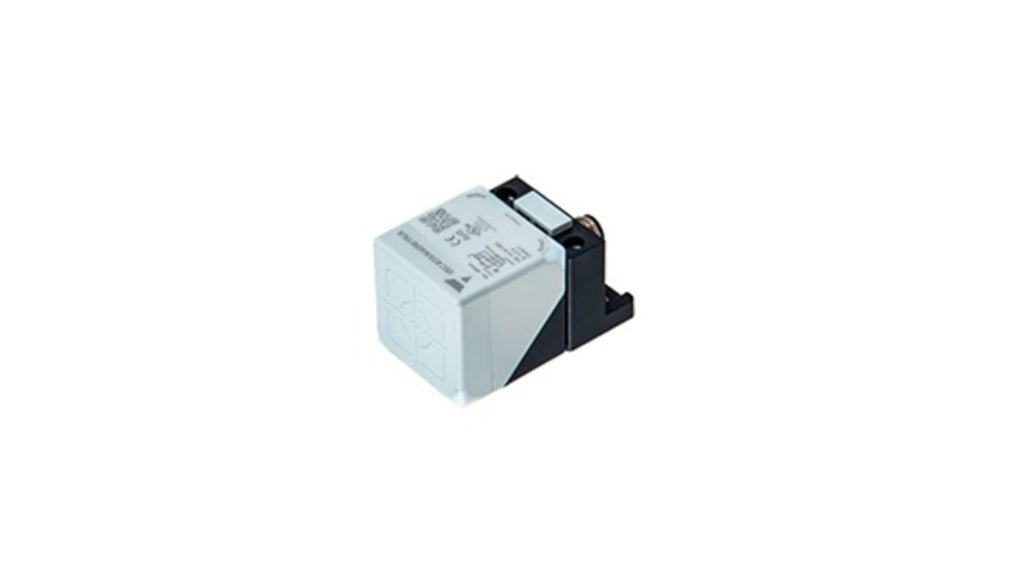 Sensore di prossimità induttivo rettangolare. Tecnologia induttiva, uscita NPN, gamma di rilevamento 22 mm, tensione di alimentazione 10 a 30 V CC, connettore maschio a 4 pin M12 x 1, grado di protezione IP69K, ampio range di temperatura da -25 a +80 gradi Celsius, dimensioni 40 mm x 40 mm, montaggio in 5 posizioni, quattro LED per stato di commutazione. Codice costruttore IRC40SF22M1NA, marchio Carlo Gavazzi.