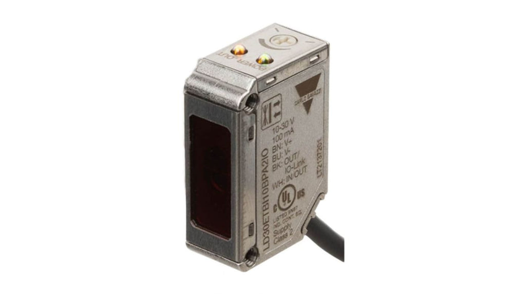 Sensore fotoelettrico rettangolare a diffusione, rilevamento fino a 1 m, uscita PNP/NPN NO/NC, PUSH/PULL. Collegamento elettrico con cavo in PVC a 4 fili, protocollo di comunicazione IO-Link. Contenitore in acciaio inossidabile, finestra di rilevamento in polifenilensulfone, resistenza a detergenti aggressivi, pulizia ad alta pressione, indicazione LED. Serie LD30. Codice costruttore LD30ETBI10BPA2IO.