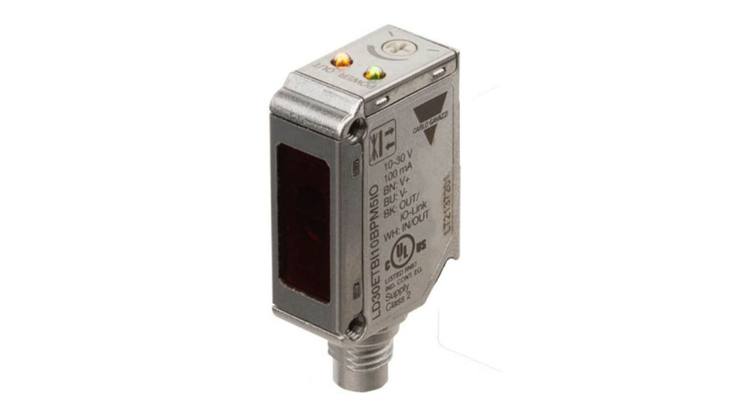 Sensore fotoelettrico rettangolare a diffusione, rilevamento fino a 1 m, uscita PNP/NPN NO/NC, PUSH/PULL. Collegamento elettrico con connettore a 4 pin M8, protocollo di comunicazione IO-Link. Contenitore in acciaio inossidabile, finestra di rilevamento in polifenilensulfone, resistenza a detergenti aggressivi, pulizia ad alta pressione, indicazione LED. Marchio Carlo Gavazzi, serie LD30. Codice costruttore LD30ETBI10BPM5IO.
