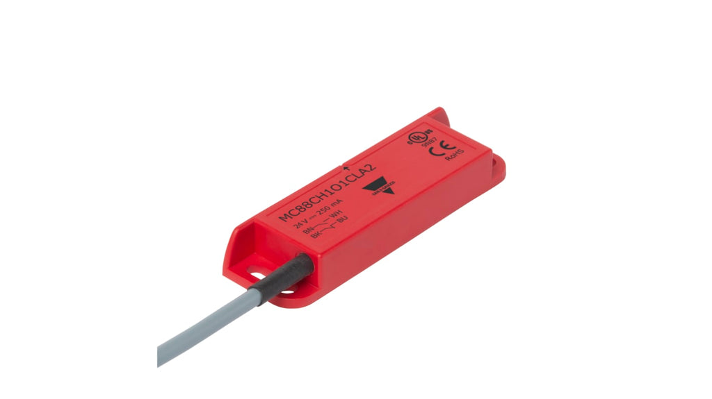 Sensore magnetico di sicurezza Carlo Gavazzi, tensione di alimentazione 12-24V ca/cc, contatti di sicurezza NO/NC, custodia in plastica, tipo di connessione cavo, contatto reed magnetico, attuatore magnetico, grado di protezione IP67, dimensioni 37mm x 15mm, approvazioni CE e cULus, adatto per applicazioni fino alla categoria di sicurezza 4, PLe secondo EN ISO 13849 1.