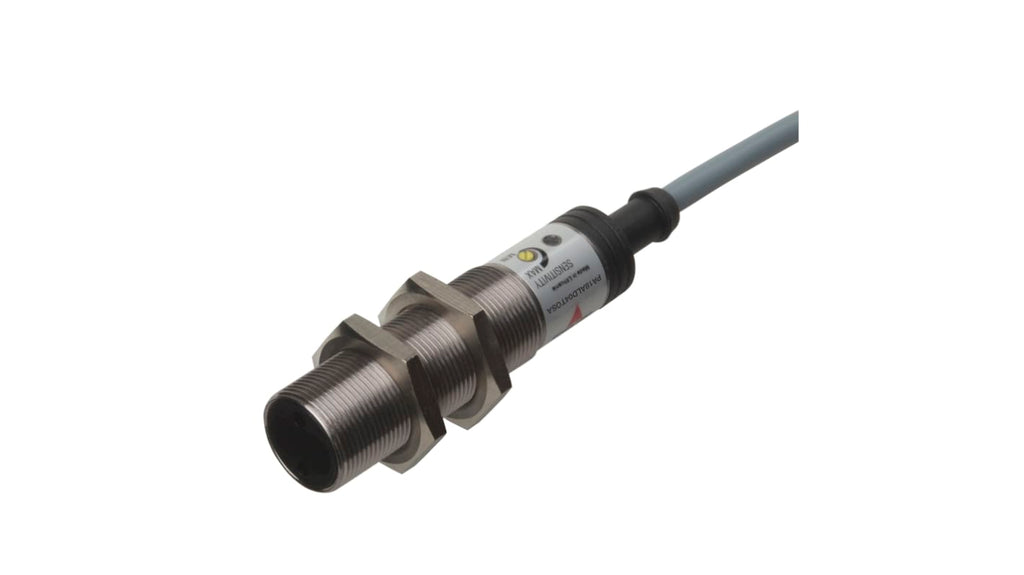 Sensore fotoelettrico cilindrico retroriflettente, rilevamento fino a 3000 mm, uscita a due fili, collegamento elettrico tramite cavo, modalità di commutazione buio, indicazione di uscita a LED, protezione contro i transienti, luce a infrarossi modulata, grado di protezione IP67, elevata immunità alla luce ambiente, regolazione semplice con potenziometro a 270 gradi, costruzione in ottone nichelato M18 per applicazioni pesanti.
