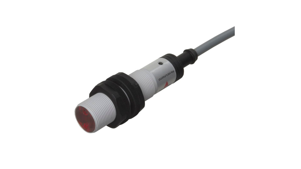 Sensore fotoelettrico cilindrico, rilevamento attraverso il fascio, gamma di rilevamento 16000 mm, uscita NPN, modalità di commutazione luce/buio, connettore M12, alloggiamento in ABS, grado di protezione IP67 e IP69K, protezione contro l'inversione di polarità, cortocircuiti e transienti, indicazione a LED per stabilità e alimentazione ON, potenziometro per regolazione della sensibilità. Codice costruttore PA18CRT16M1, marchio Carlo Gavazzi.