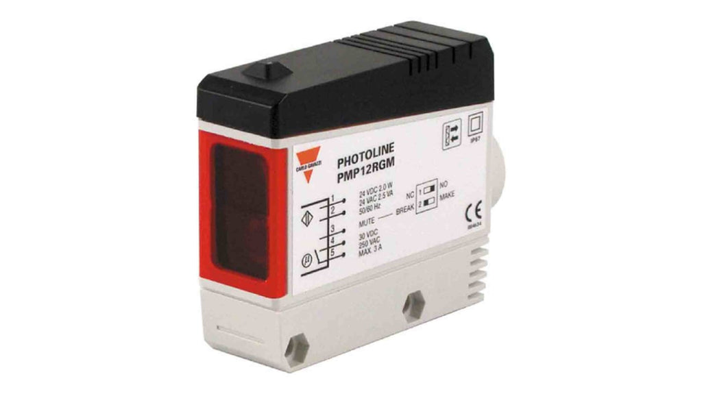 Sensore fotoelettrico rettangolare a retroriflessione. Rilevamento fino a 12 m, uscita selezionabile NC/NO. Luce modulata visibile, indicazione LED per target rilevato. Progettato per ambienti industriali, conforme alle normative europee e nordamericane. Collegamento elettrico tramite cavo. Serie PMP12.M.