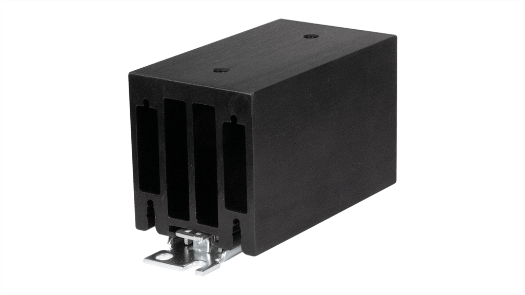 Dissipatore per relè RHS, montaggio su guida DIN, progettato per 1 relè a stato solido monofase, resistenza termica ottimizzata, conforme alle norme RoHS. Accessorio della serie RHS, compatibile con relè statici.