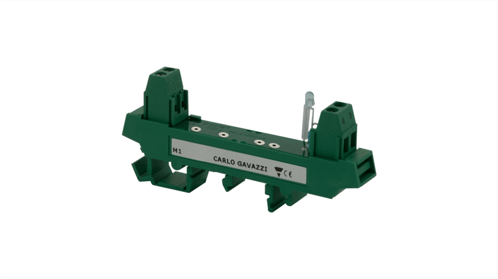Adattatore DIN per relè a stato solido. Modulo Carlo Gavazzi 250V con LED, progettato per la Serie RP e RPM. Include viti terminali M3 per il montaggio. Accessorio con protezione antimanomissione. Compatibile con montaggio su PCB.