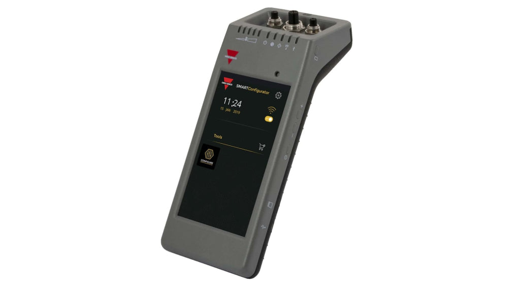 Software Carlo Gavazzi Smart Configurator per sensori IO-Link, display touchscreen HD da 5,5", alimentazione autonoma con batteria ricaricabile LI-ION, ricarica tramite porta micro USB, 16GB di memoria interna espandibile con micro SD, Wi-Fi abilitato, compatibile con tutti i sensori IO-Link, portatile e facile da usare, 5 ore di funzionamento continuo, 22 ore con schermo spento.