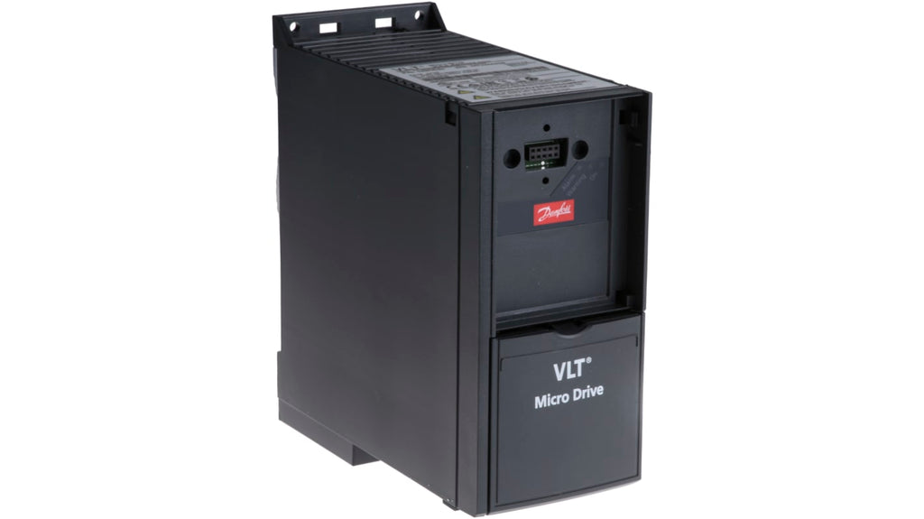 Inverter VLT FC51, potenza nominale 2,2 kW, ingresso trifase, tensione 400 V c.a., corrente nominale 5,3 A, frequenza di uscita 0 a 200 Hz (VVC+ Mode), 0 a 400 Hz (U/f Mode), montaggio a pannello, grado di protezione IP20, filtro RFI integrato, senza pannello di controllo, compatibile con motori in c.a., standard ISO 14001, RoHS, WEEE. Dimensioni: 176 mm x 75 mm x 168 mm.