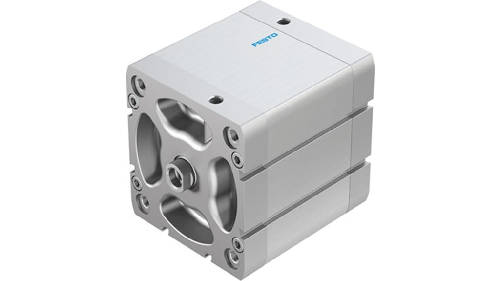 Cilindro pneumatico compatto Festo, doppio effetto, foro 100mm, corsa 60mm, conforme allo standard ISO 21287, rilevamento posizione con interruttori di prossimità, ammortizzazione pneumatica autoregolante, resistenza alla corrosione classe 2, conforme a RoHS, senza necessità di regolazione, possibilità di funzionamento lubrificato, conformità VDMA24364 B1B2 L LABS. Codice costruttore ADN-100-60-I-PPS-A.