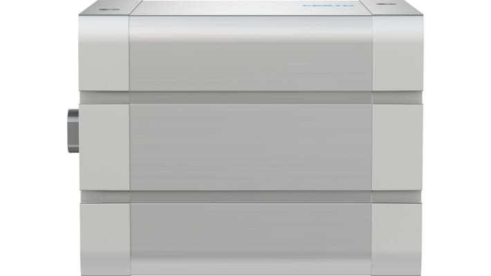 Cilindro pneumatico compatto Festo, serie ADN, azione doppia, alesaggio 100 mm, corsa 80 mm, collegamento G 1/8, pressione operativa massima 10 bar, ammortizzazione elastica, filettatura femmina dello stelo, temperatura operativa da -20 a +80 gradi, conforme agli standard ISO 21287 e VDMA 24364-B1/B2-L, peso 2.3 kg.