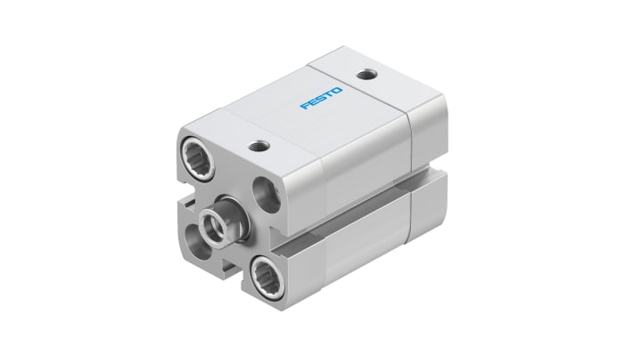 Cilindro pneumatico a doppio effetto Festo, foro da 20 mm, corsa 15 mm, pressione operativa massima 10 bar, attacco M5, ammortizzazione elastica, dimensioni 35.5 x 35.5 x 57.5 mm, temperatura operativa da -20 a +80 gradi Celsius, conforme agli standard ISO 21287 e VDMA 24364-B1/B2-L. Montaggio versatile per applicazioni industriali automatizzate.