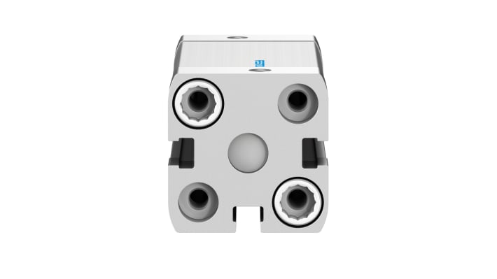 Cilindro pneumatico a doppio effetto, foro da 20mm, corsa 40mm, collegamento M5, pressione operativa massima 10 bar. Realizzato in lega di alluminio forgiato, con guarnizioni TPE-U resistenti all'usura. Dimensioni 35.5 x 35.5 x 82.5mm, intervallo di temperatura da -20 a +80 gradi. Standard ISO 21287, VDMA 24364-B1/B2-L. Anelli ammortizzatori per riduzione di rumore e vibrazioni. Codice costruttore ADN-20-40-A-P-A.