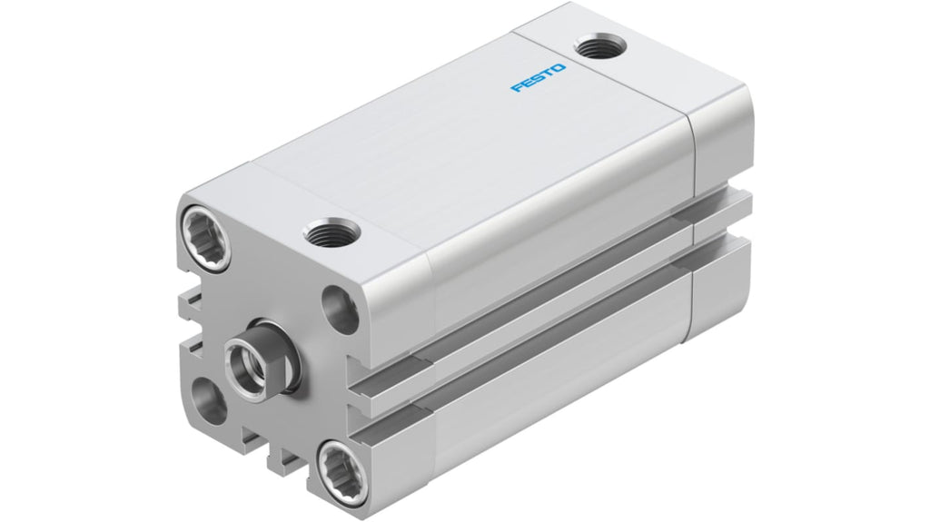 Cilindro pneumatico a doppio effetto Festo, serie ADN, foro 32 mm, corsa 50 mm, attacco G 1/8, pressione operativa massima 10 bar, temperatura operativa da -20 a +80 gradi Celsius, dimensioni 47 x 47 x 100 mm, filettatura femmina sullo stelo del pistone, ammortizzazione elastica, conforme alla norma ISO 21287, compatibile con interruttori di prossimità per il rilevamento della posizione.