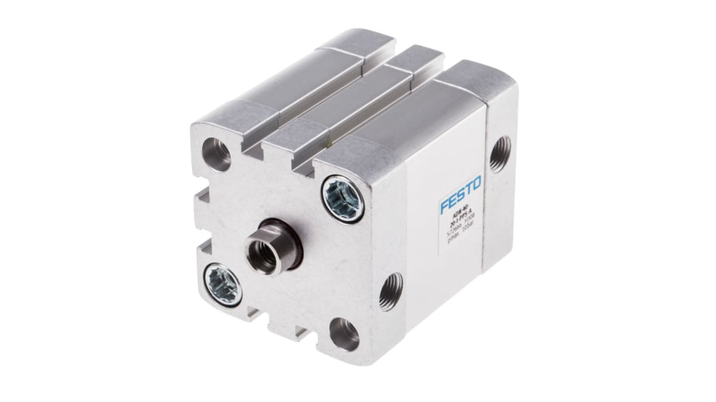 Cilindro pneumatico a doppio effetto, foro 40mm, corsa 20mm, collegamento G 1/8, pressione operativa massima 10 bar. Dimensioni 54.5 x 54.5 x 71.1mm, temperatura operativa da -20 a +80 gradi. Ammortizzazione pneumatica autoregolante, conforme allo standard ISO 21287, scanalatura per sensori di prossimità. Struttura a basso attrito, montaggio verticale o orizzontale. Codice costruttore ADN-40-20-I-PPS-A, marchio Festo.