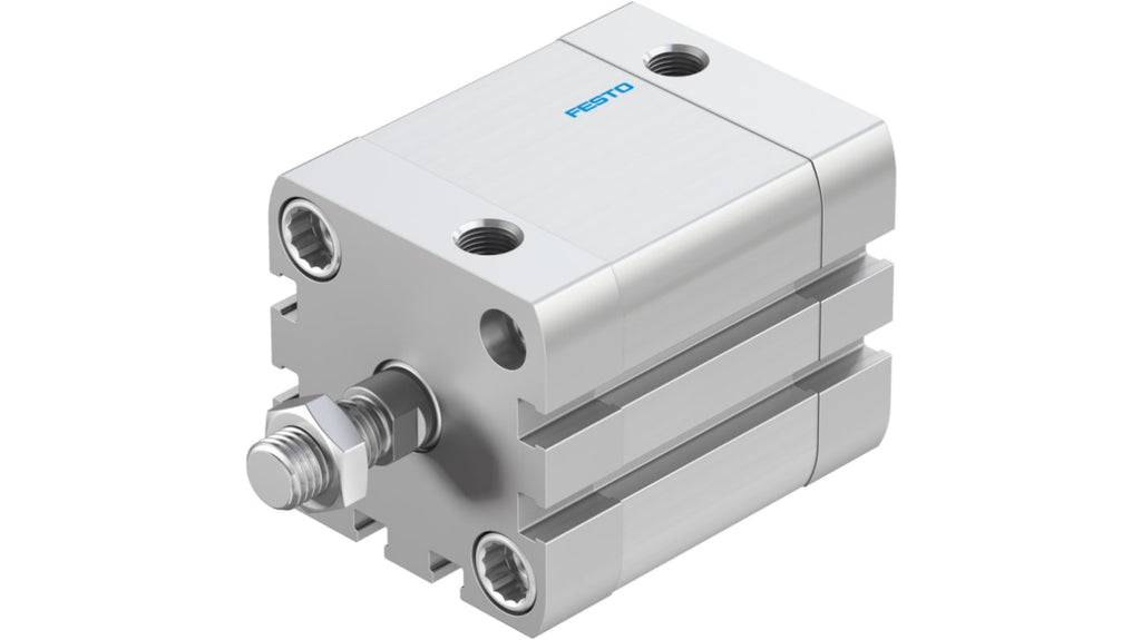 Cilindro pneumatico a doppio effetto, foro 40 mm, corsa 25 mm, modello ADN-40-25-A-P-A, marchio Festo. Pressione operativa massima 10 bar, temperatura operativa da -20 a +80 gradi. Dimensioni 54.5 x 54.5 x 76.1 mm, filettatura maschio G 1/8. Design compatibile con standard ISO, ammortizzazione elastica, montaggio flessibile. Richiede aria compressa conforme ISO 8573-12010. Lubrificazione opzionale.