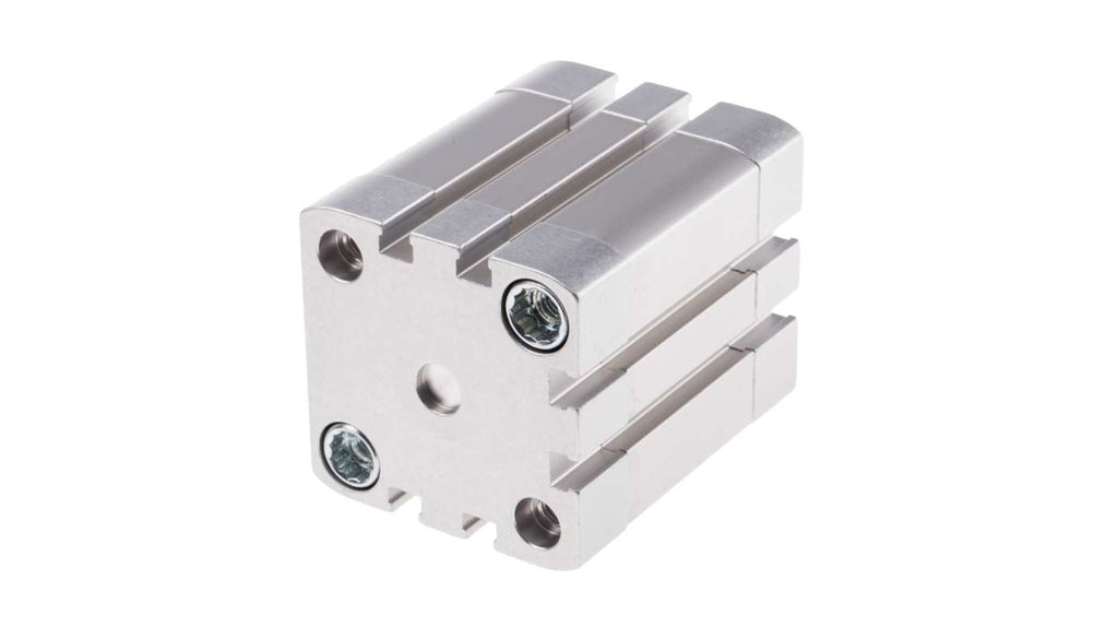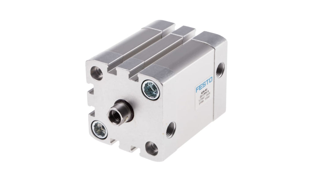 Cilindro pneumatico a doppio effetto, foro 40mm, corsa 25mm, collegamento G 1/8, pressione massima 10 bar. Conforme allo standard ISO 21287, dotato di ammortizzazione pneumatica autoregolante. Dimensioni 54.5 x 54.5 x 76.1mm, temperatura operativa da -20 a +80 gradi. Scanalatura per sensori di prossimità, struttura a basso attrito, montaggio verticale o orizzontale. Codice costruttore ADN-40-25-I-PPS-A, marchio Festo.