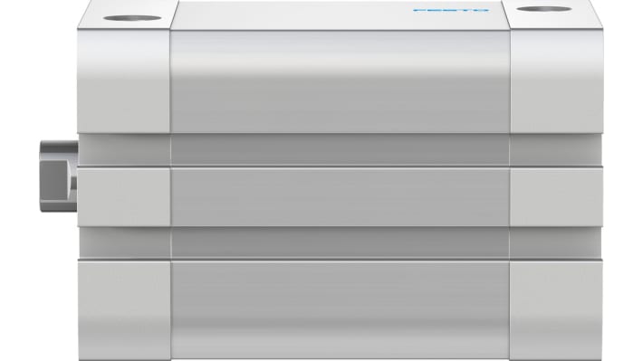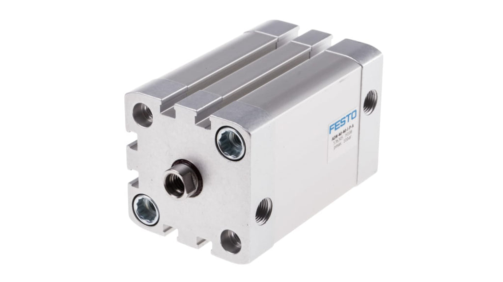 Cilindro pneumatico a doppio effetto Festo, foro 40 mm, corsa 40 mm, attacco G 1/8, pressione operativa massima 10 bar. Dimensioni 54,5 x 54,5 x 91,1 mm, massa mobile 80 g. Asta in acciaio ad alta lega, temperatura operativa da -20 a +80 gradi. Ammortizzazione elastica, filettatura per asta del pistone M8. Standard ISO 21287, VDMA 24364.