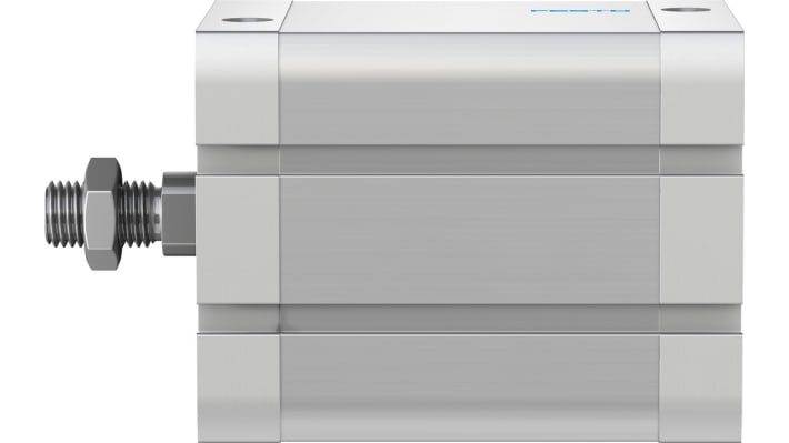 Cilindro pneumatico compatto Festo, doppio effetto, foro 63 mm, corsa 50 mm, collegamento G 1/8, pressione operativa massima 10 bar, temperatura operativa da -20 a 80 gradi, ammortizzamento elastico, peso 1.1 kg, conforme allo standard ISO 21287, progettato per applicazioni industriali.