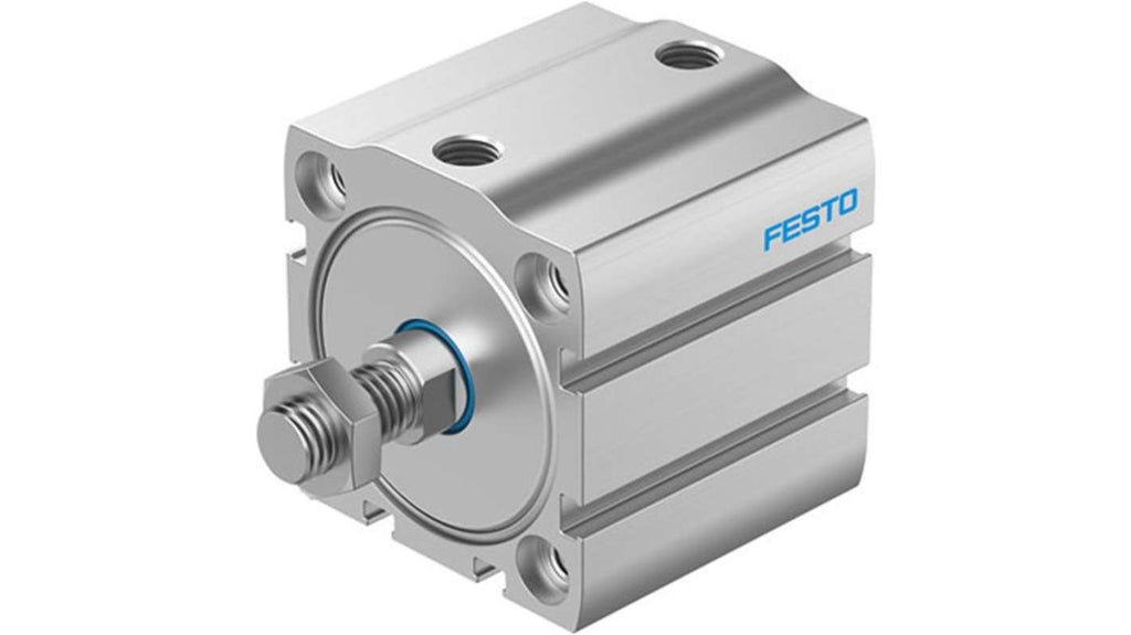 Cilindro pneumatico compatto Festo, doppio effetto, foro 50 mm, corsa 45 mm, collegamento pneumatico G 1/8. Struttura in lega di alluminio anodizzato, resistenza alla corrosione, pressioni operative da 0,04 MPa a 1 MPa. Ammortizzazione flessibile, rilevamento posizione integrato, classe di camera bianca, progettato per applicazioni industriali e produzione di batterie agli ioni di litio. Modello ADN-S-50-45-A-P-A-F1A.