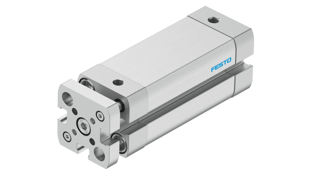 Cilindro pneumatico compatto Festo, serie ADNGF, doppio effetto, foro 16 mm, corsa 40 mm, numero di parte 554218. Pressione di esercizio fino a 10 bar, ammortizzazione elastica su entrambe le estremità, conforme a ISO 21287 e ISO 8573-1. Posizioni di montaggio versatili, energia d'impatto 0,15 J. Adatto per automazione, assemblaggio e applicazioni robotiche.