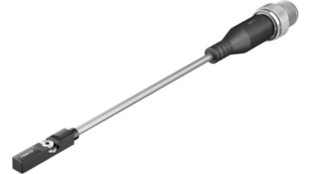 Sensore di prossimità Festo, serie 3-M12, modello CRSMT-8M-PS-24V-K-0. Standard EN 60947-5-2, progettato per slot a T, resistente a alimenti e alcali, compatibile con lubrificanti di raffreddamento. Marchio CE, autorizzazione RCM, conforme a direttive UE per EMC e protezione antiesplosione ATEX, certificazione KC-EMV.