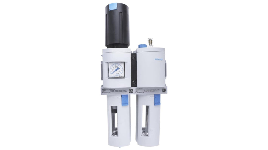 Filtro regolatore lubrificatore Festo, attacco G 1/2, scarico manuale, grado di filtrazione 40μm, pressione operativa da 1,5 bar a 20 bar, gamma di temperatura ambiente da -10 a +60 gradi, manometro integrato, impostazione pressione massima 12 bar, impostazione pressione minima 0,5 bar, materiale recipiente in plastica, dimensione filettatura attacco 1/2 poll.
