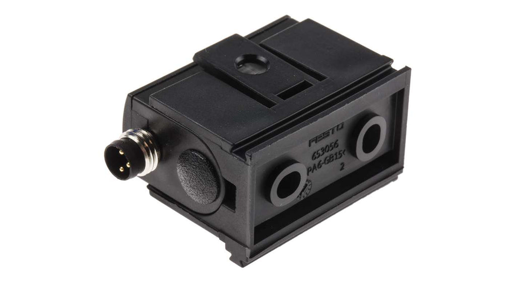 Sensore di pressione Festo, metodo di misurazione piezoresistivo, media di funzionamento aria, pressione operativa massima 10 bar, minima 0 bar, attacco 6 mm Tubing, tensione di alimentazione 15-30 V cc, grado di protezione IP40, temperatura operativa da 0 a 50 gradi Celsius, peso 19 g, alloggiamento in poliammide, indicatore LED giallo.