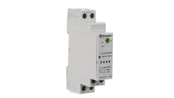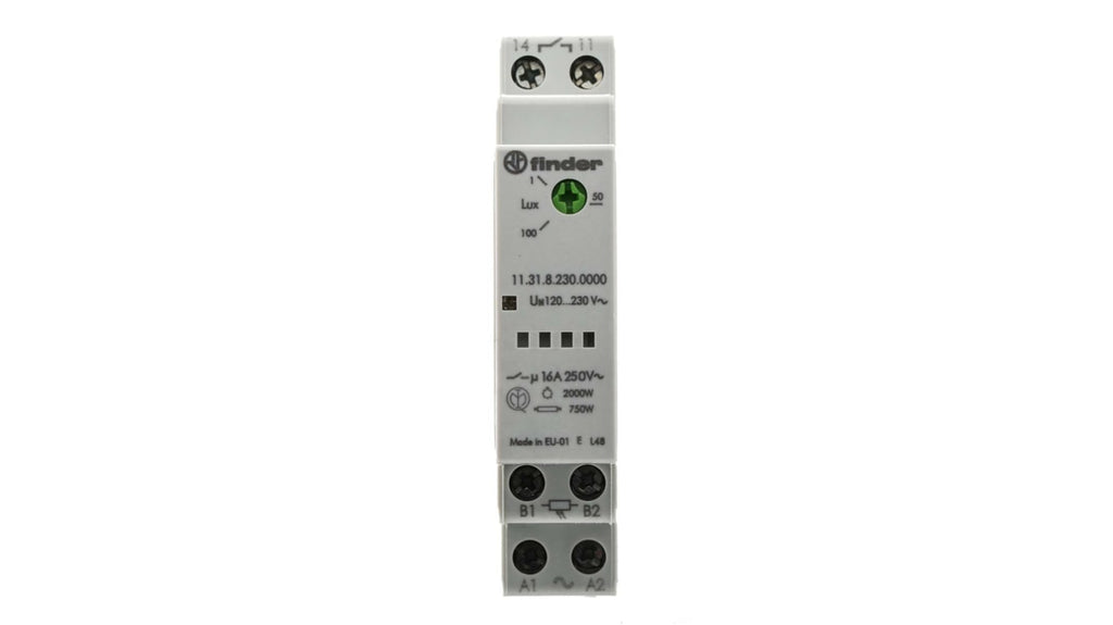 Pulsante temporizzatore unipolare normalmente aperto, tensione di alimentazione 230 V ca, 1 canale, tipo terminale a vite. Prodotto fornito con sensore fotoelettrico e adattatore per montaggio a pannello. Regolazione della sensibilità da 1 a 100 lux, basso consumo energetico. Compatibile con sensore fotoelettrico IP65 disponibile separatamente. Codice costruttore 11.31.8.230.0000, marchio Finder.