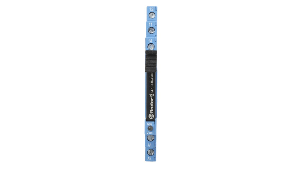 Modulo relè d'interfaccia per guida DIN, tensione bobina 24V cc, configurazione contatti SPST, corrente di commutazione 6A, isolamento elettrico tra circuiti, espulsione immediata tramite clip in plastica, indicatore bobina integrato, commutazione silenziosa, temperatura operativa da -20 a +55 gradi, dimensioni 87.9 x 6.2 x 75.6 mm, grado di protezione IP20, certificazioni CE, CSA, EAC, CRUus.
