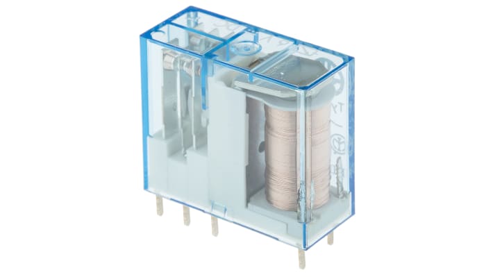 Relè di potenza Finder serie 40, DPDT, bobina 6V cc, montaggio su circuito stampato. Corrente di commutazione 8A, tensione di commutazione massima 400V ca, potenza di commutazione massima 2 kVA. Isolamento bobina-contatto 6 kV, dimensioni 25x29x12,4 mm, resistenza bobina 75Ω, potenza bobina 500mW. Materiale contatto lega di argento, temperatura operativa da -40 a +85 gradi Celsius. Riconoscimenti UL, SEV, VDE, CSA, GOST, IMQ, RINA.