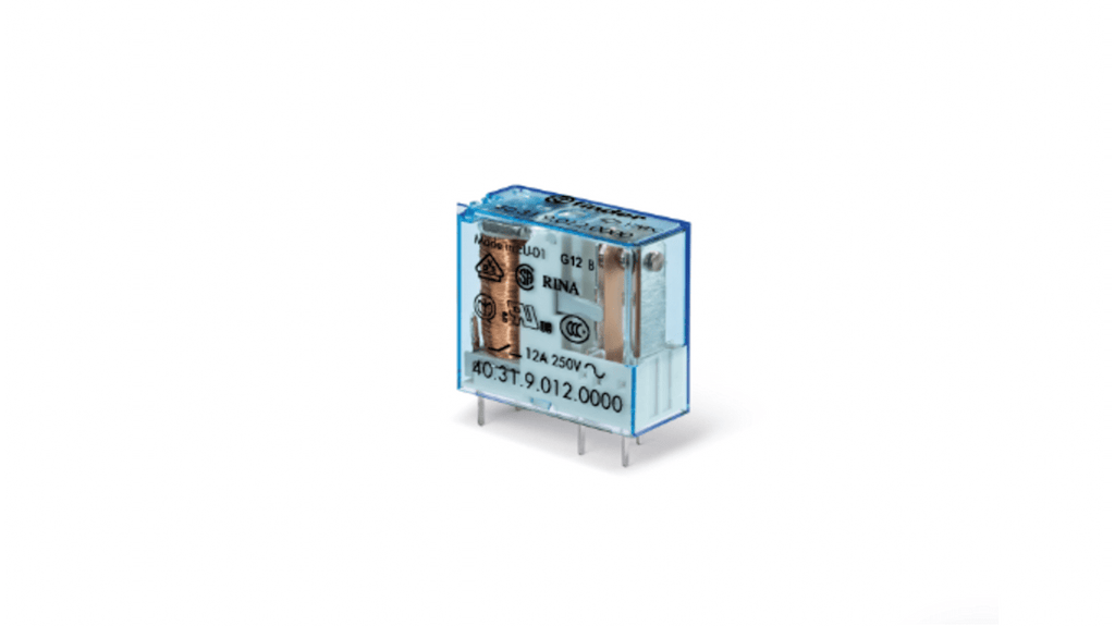 Relè di potenza Finder, SPDT, bobina 24V cc, montaggio su circuito stampato, A innesto. Corrente di commutazione 12A, numero di poli 1, materiale di contatto senza cadmio, soddisfa i requisiti del filo incandescente EN 60335-1. Montaggio su guida da 35 mm con terminali a vite, senza vite o a innesto, montaggio su connettori femmina fino a 10 A, età di scorrimento e spaziatura 8 mm.