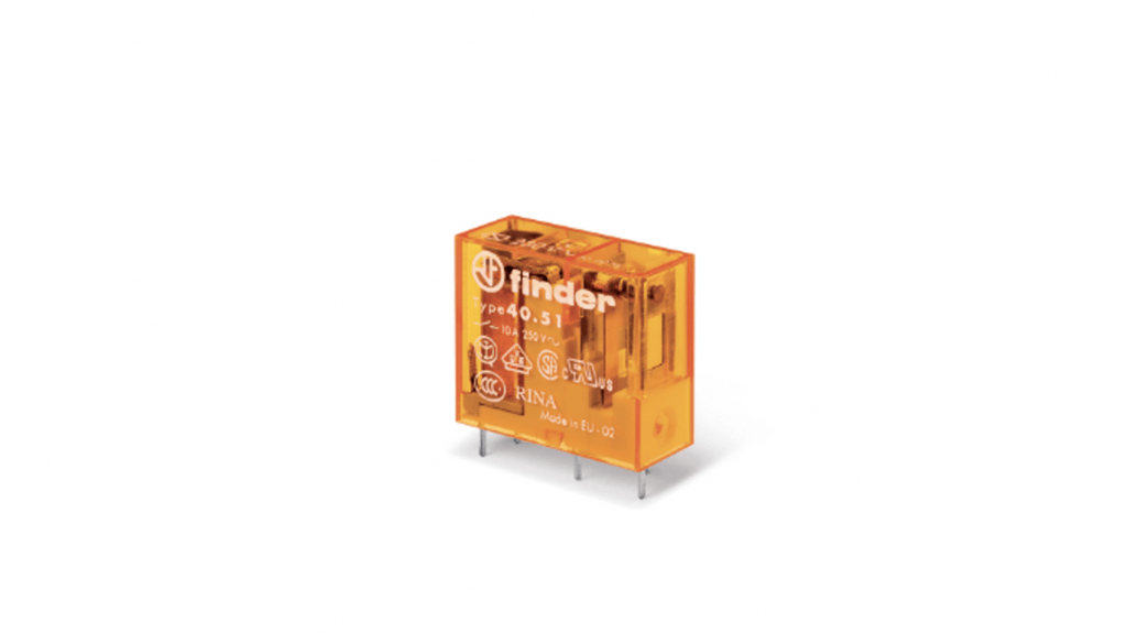 Relè di potenza Finder, SPDT, bobina 24V ca, montaggio su circuito stampato, corrente di commutazione 12A, numero di poli 1, montaggio su guida da 35 mm con terminali a vite, senza vite o a innesto, materiale di contatto senza cadmio, conforme a EN 60335-1, età di scorrimento e spaziatura 8 mm.