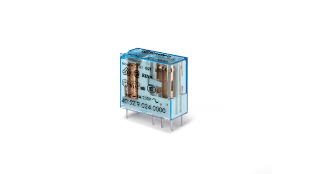 Relè di potenza Finder, bobina 120V ca, montaggio su circuito stampato, corrente di commutazione 8A, 2 poli, materiale di contatto senza cadmio, soddisfa i requisiti del filo incandescente EN 60335-1, montaggio su guida da 35 mm con terminali a vite, senza vite o a innesto, montaggio su connettori femmina.