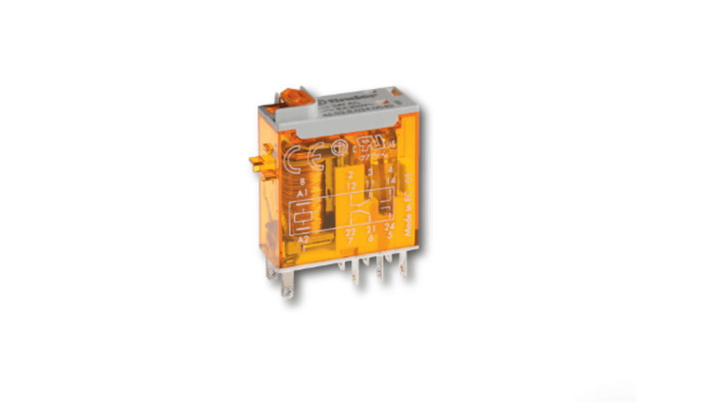 Relè di potenza Finder, bobina 24V cc, montaggio a innesto, corrente di commutazione 8A, 2 poli, contatti senza cadmio, opzioni di moduli di indicazione della bobina e soppressione EMC, modulo timer disponibile, pulsante di prova bloccabile, indicatore meccanico e LED, adattatori di montaggio alternativi opzionali.