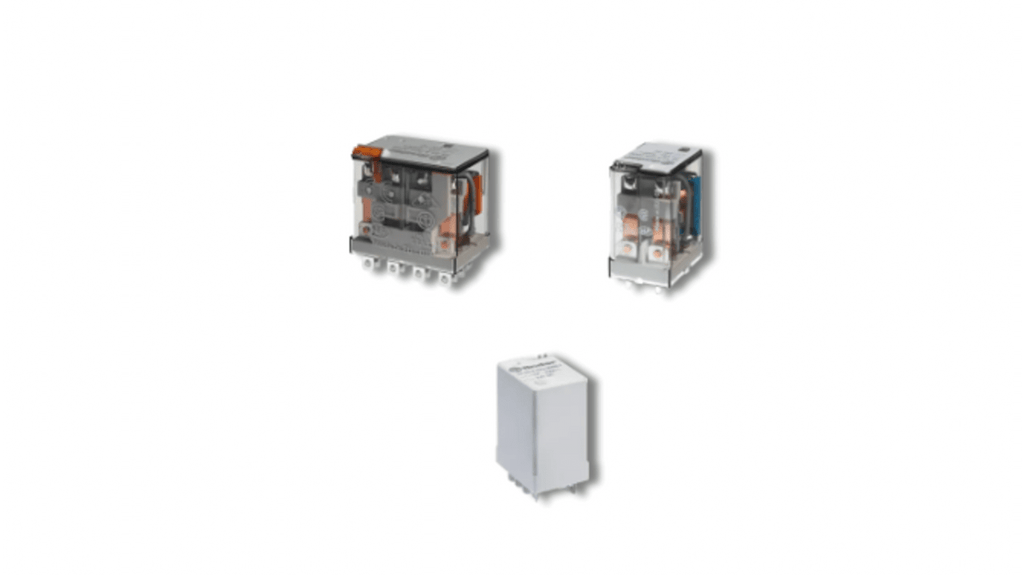Relè di potenza Finder, bobina 230V ca, montaggio a innesto, corrente di commutazione 12A, 2 poli, isolamento rinforzato tra bobina e contatti conforme a EN 60335-1, spaziatura 6 mm, distanza di scorrimento 8 mm, materiale di contatto senza cadmio, non bistabile.