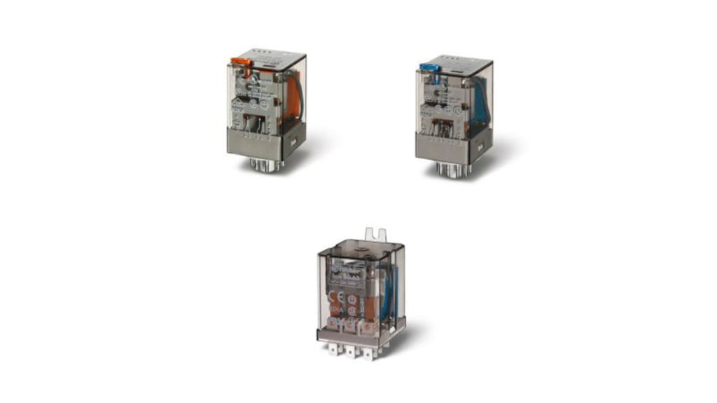 Relè di potenza Finder serie 60, 3PDT, bobina 24V cc, montaggio su flangia, corrente di commutazione 10 A, contatti senza cadmio, tensione di commutazione massima 250/400V, potenza bobina 1.3W, resistenza bobina 445Ω, isolamento bobina-contatto 3.6kV, temperatura operativa da -40°C a +70°C, dimensioni 32.5mm x 36.4mm x 54.2mm, materiale contatto lega di argento, vita utile 200000 cicli.