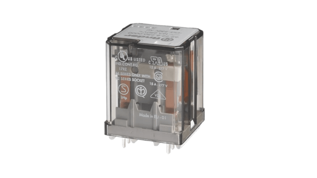 Relè di potenza Finder, bobina 230V ca, montaggio su circuito stampato, corrente di commutazione 16A, 2 poli, isolamento rinforzato conforme a EN 60335-1, spaziatura 6 mm, distanza di scorrimento 8 mm, contatti senza cadmio, montaggio a innesto, bistabile no. Codice costruttore 622282300000.
