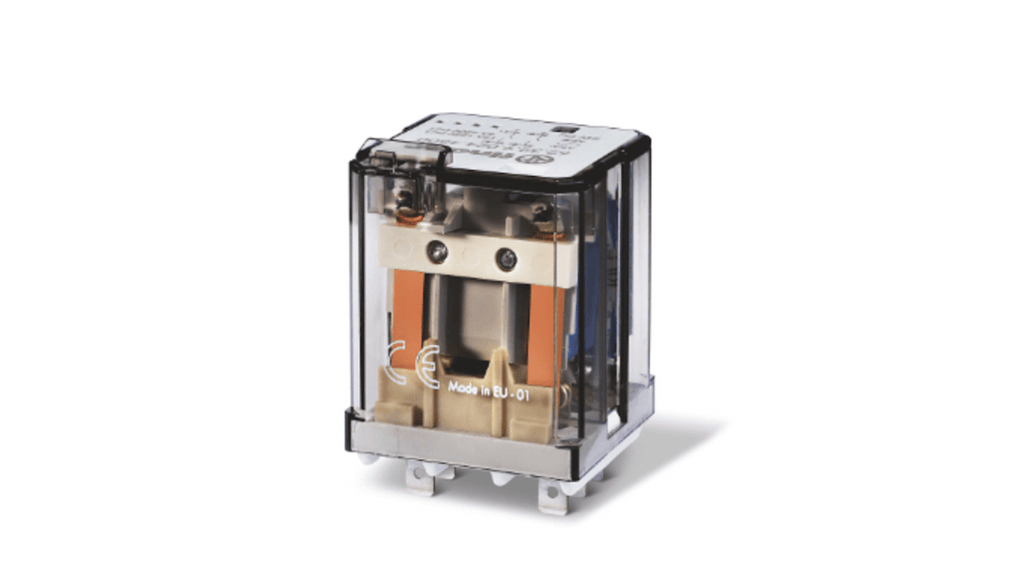 Relè di potenza Finder, bobina 48V cc, montaggio a innesto, capacità di commutazione carico c.c. 16A, 2 poli, materiale di contatto senza cadmio, isolamento rinforzato tra bobina e contatti conforme a EN 60335-1, spaziatura 6 mm, distanza di scorrimento 8 mm, bistabile: no.