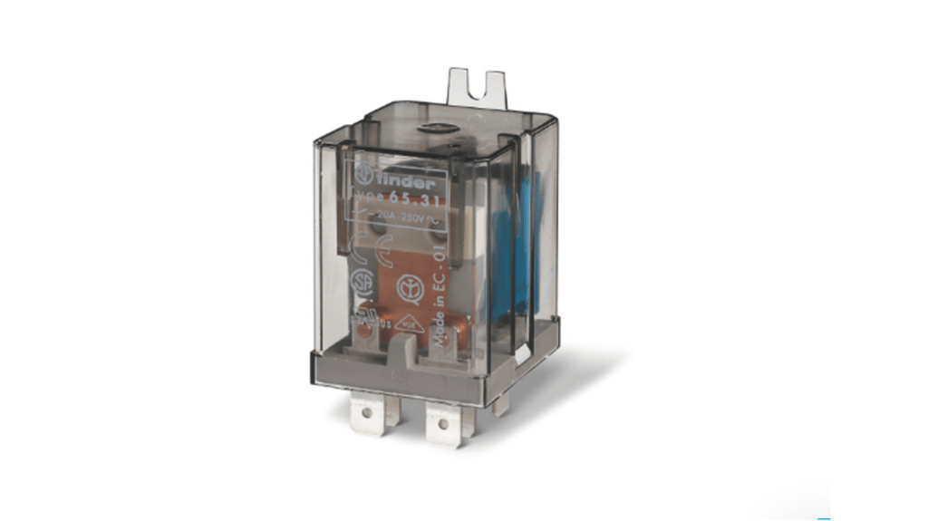Relè di potenza Finder, SPDT, bobina 240V ca, montaggio su flangia, corrente di commutazione 20A, isolamento rinforzato tra bobina e contatti conforme a EN 60335-1, spaziatura 6 mm, distanza di scorrimento 8 mm, contatti senza cadmio, montaggio a innesto, numero di poli 1, bistabile no.