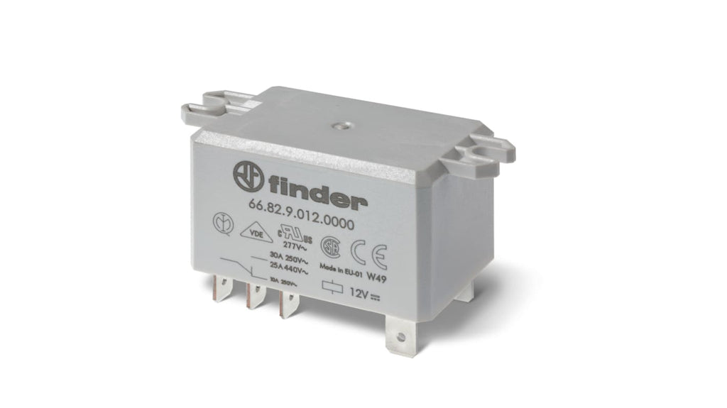 Relè di potenza DPST-2NO, bobina 230V ca, montaggio su flangia, corrente di commutazione 30A, contatti in AgCdO, LED e indicatore meccanico, opzioni di pulsante di prova, Faston 250 (6,3 x 0,8 mm), utilizzato in applicazioni industriali come illuminazione, forni e gestione dell'alimentazione elettrica.
