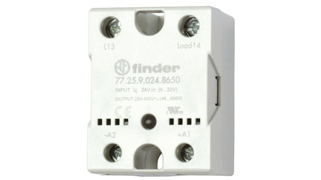 Relè a stato solido a montaggio superficiale, corrente massima 40 A, tensione di carico massima 280 V c.a., tensione di controllo massima 230 V c.a., tipo di switching Zero Cross, configurazione contatto SPST, terminali a vite, dimensioni 44.5 x 36.4 x 57.7 mm, temperatura di esercizio -30 a +80 gradi Celsius, categoria di protezione IP 20, montaggio su dissipatore.