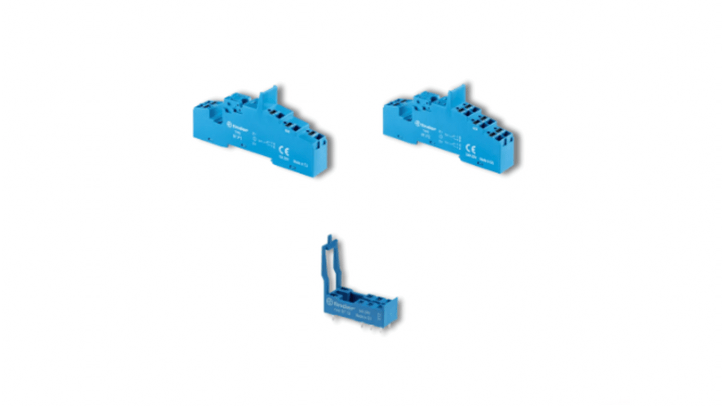 Zoccolo Finder 97 Series per relè serie 46.52, connettore femmina per montaggio su circuito stampato o guida da 35 mm, morsetti senza viti, tensione 250V ca, accessorio per utilizzo con relè a innesto. Tipo di montaggio: pannello o guida.